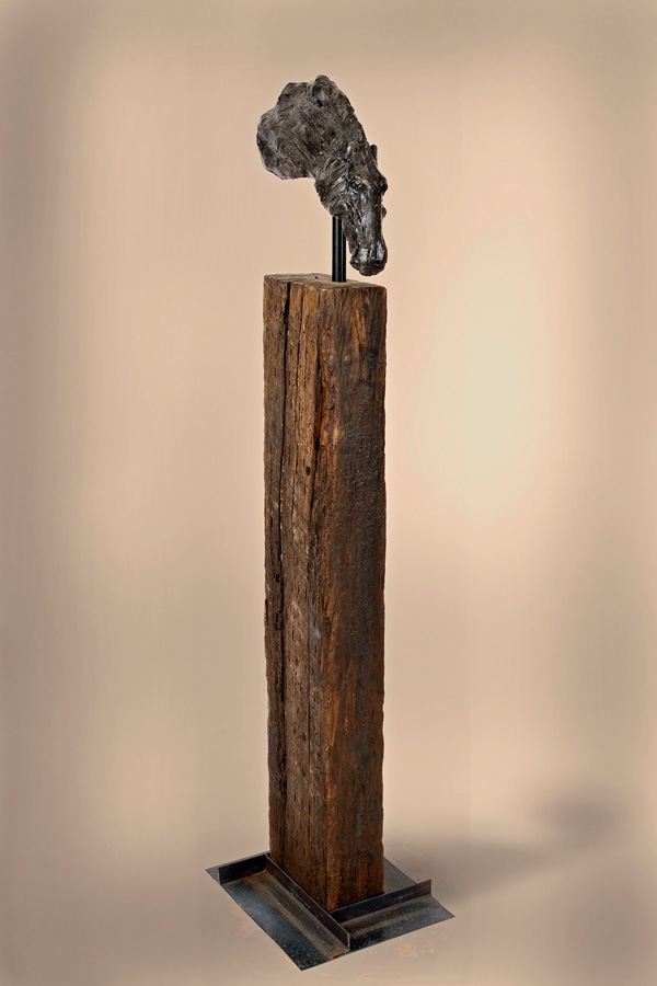 Title: Torso fragment - Medium: Bronze, wood and steel