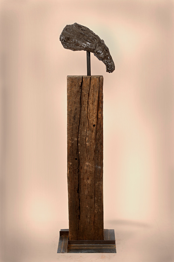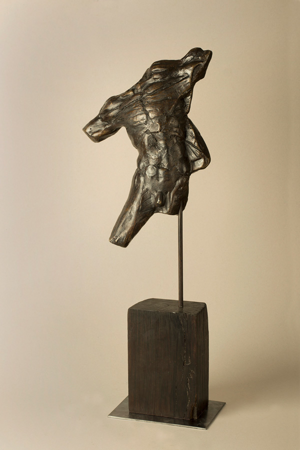 Title: Torso fragment - Medium: Bronze, wood and steel